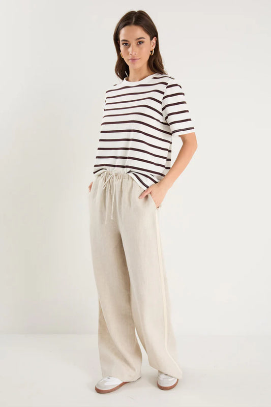 Stories Be Told Townie Natural Linen Side Stripe Elastic Waist Pants