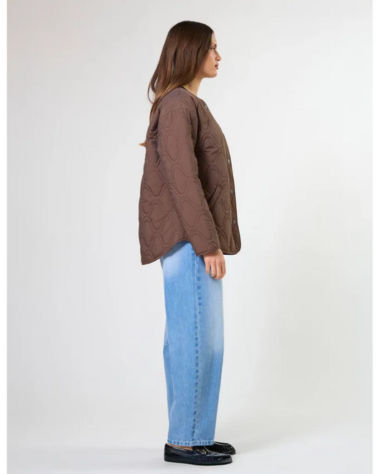 Stories Be Told Troupe Chocolate PU Leather Zip Through Bubble Hem Jacket