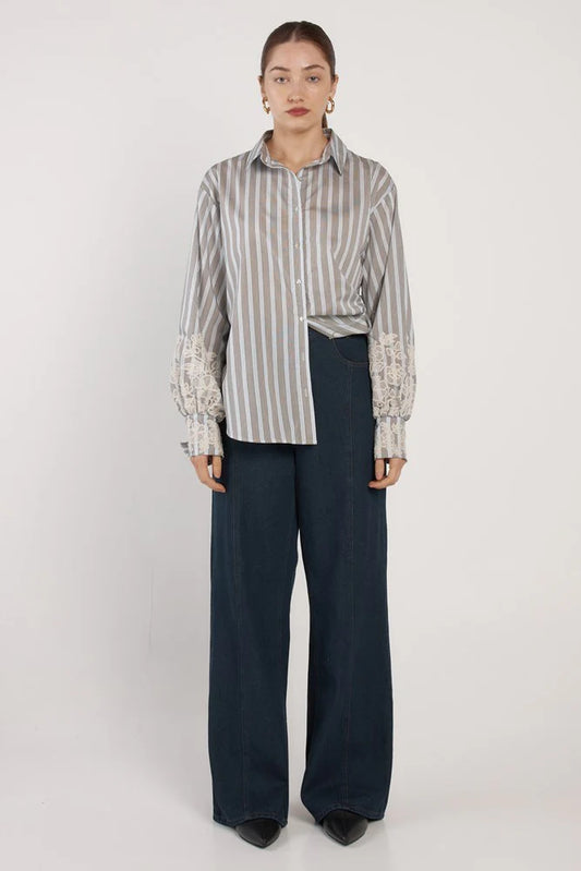 Among The Brave Varsity Deep Blue Forward Seam Barrel Jean