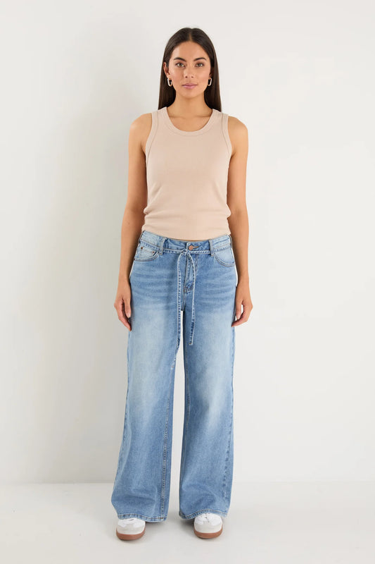 Stories Be Told College Light Blue Wide Leg Tie Belt Jean