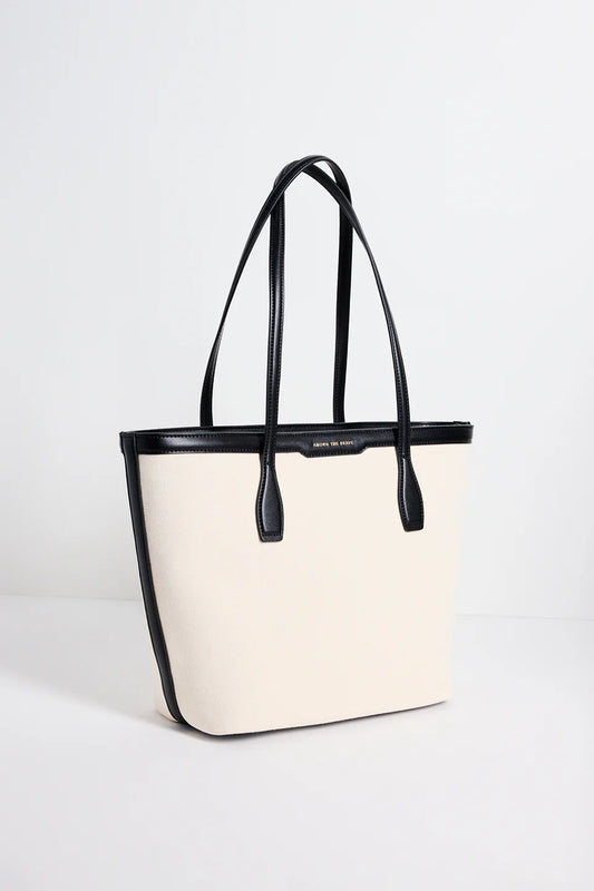 Among The Brave Natural Canvas Black Trim Tote Bag