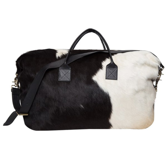 The Design Edge Weekender/Overnight Black and White Cow Hide Bag