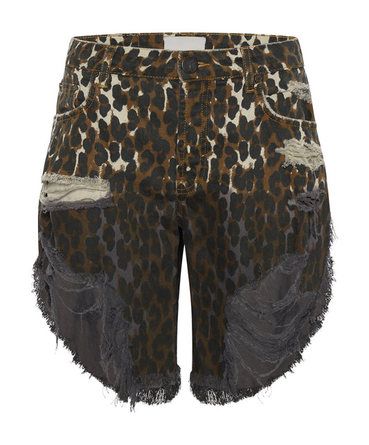 One Teaspoon Cheetahhh Frankies Long Length Denim Short