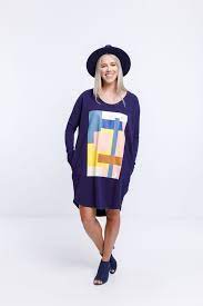 Home Lee Batwing Dress Blue with Abstract Print