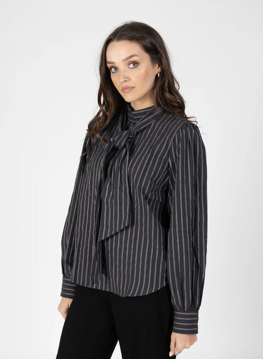 Sass Roxy Shirred Cuff Blouse - Chocolate