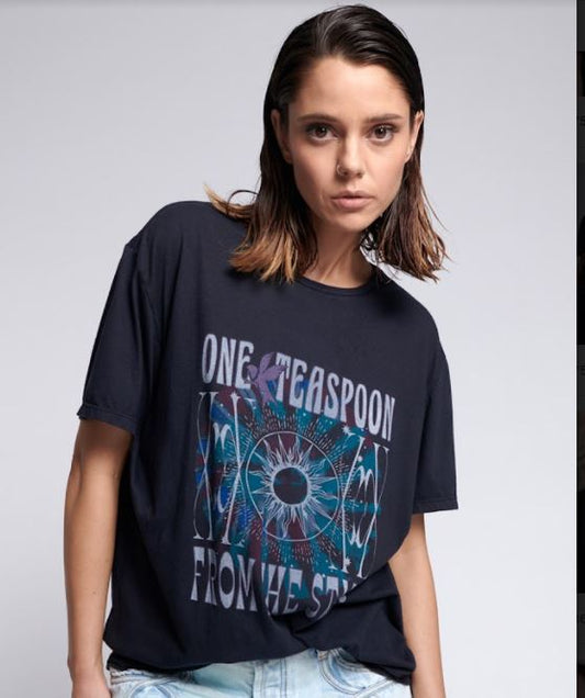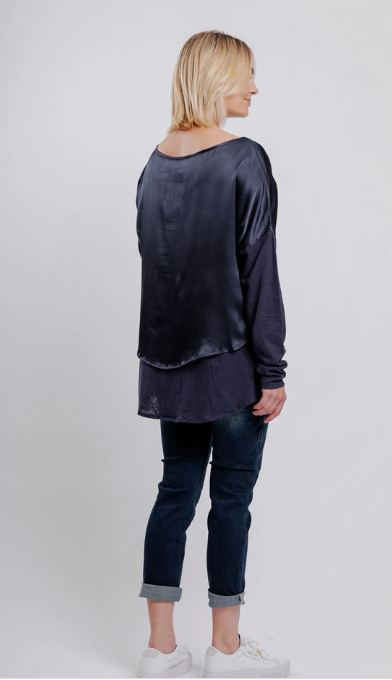 Homelee Laylah Top - Santorini Blue with Script Writing