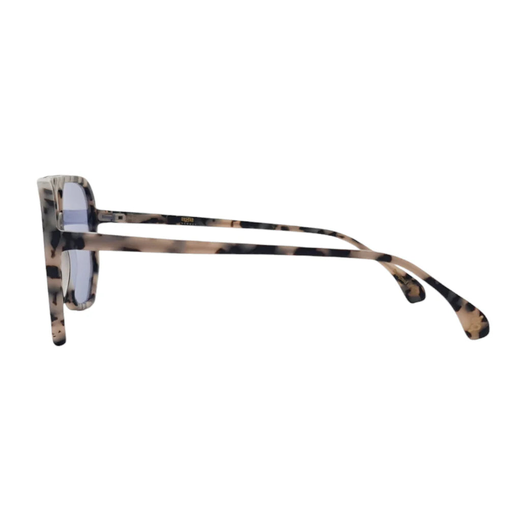 A striking matte frame that transitions from deep black to soft milky tones, creating a bold yet refined contrast. This unique blend of colors adds a contemporary twist to a classic tortoiseshell pattern. Comes in grey and blue monochrome lenses.