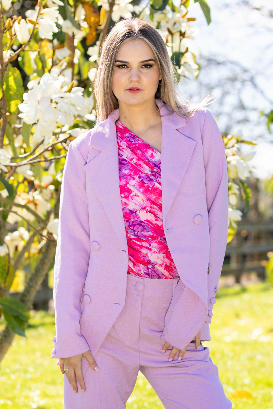 A stunning lilac blazer.