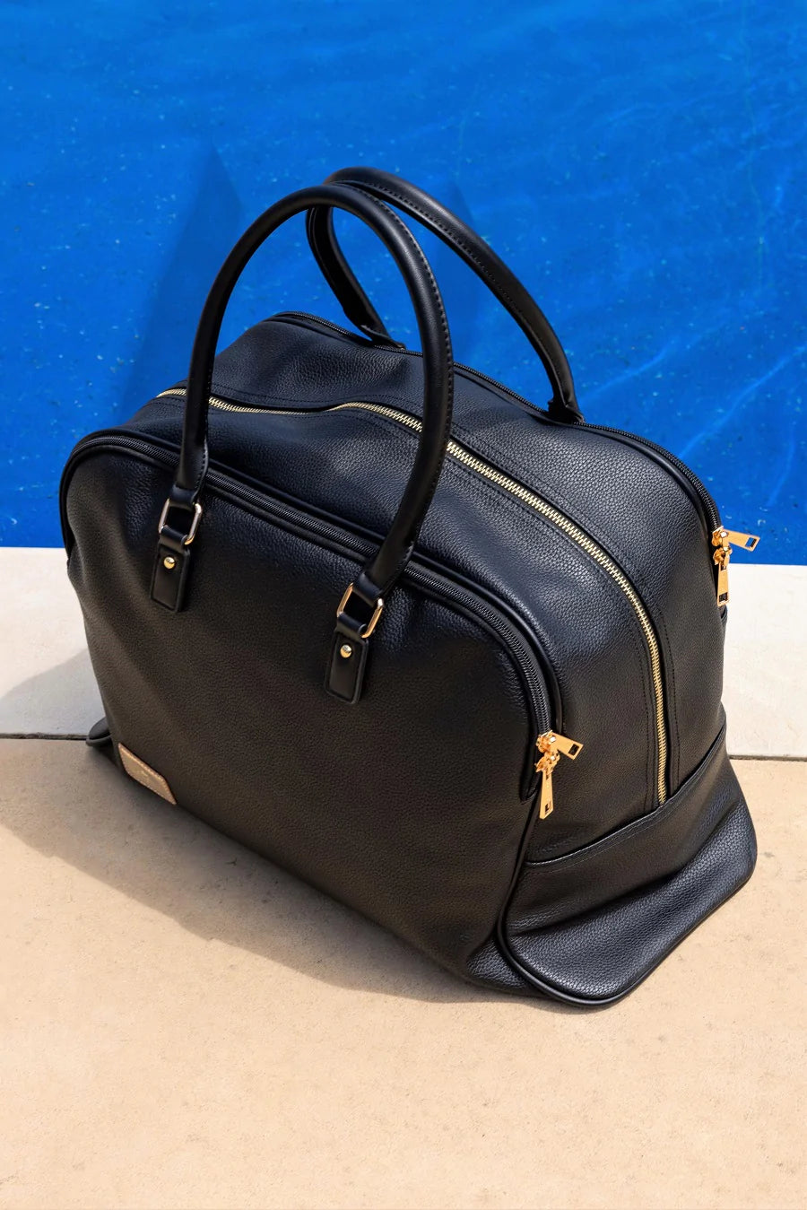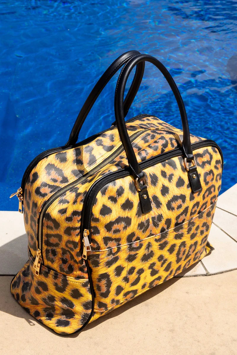 A leopard print bowling style bag with 3 main compartments to keep your items separate and organised.