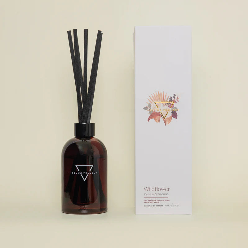 Becca Project diffusers are well and truly hand-made, using certified organic essential oils and 100% phthalate free fragrance oils. A clean and crisp blend of LIME, SANDALWOOD, PETITGRAIN, GRAPEFRUIT, AND ROSE, Wildflower will provide long lasting fragrance to any room. With its hint of rose and tropical vibes it is perfect for those staycation vibes and is great in any room of your house or office.