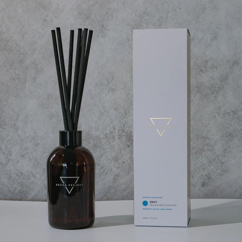 This uplifting fusion of citrus, vetiver and pepper will leave you feeling strong, energised and free-spirited. Balanced with a hint of salty ocean air, this masculine blend fosters a sense of beachy calm. Becca Project diffusers are well and truly hand-made, using certified organic essential oils and 100% phthalate free fragrance oils. A clean and crisp blend of Bergamot, Vetiver, Lime and Pepper, it will provide long lasting fragrance to any room. Envy is the perfect combination of oils to uplift and energise and is great in any room of your house or office.