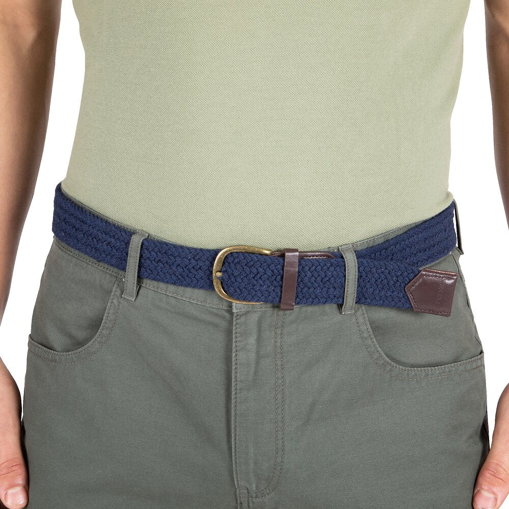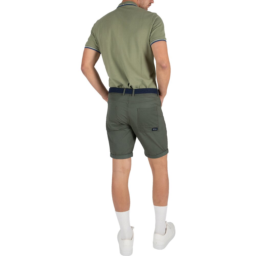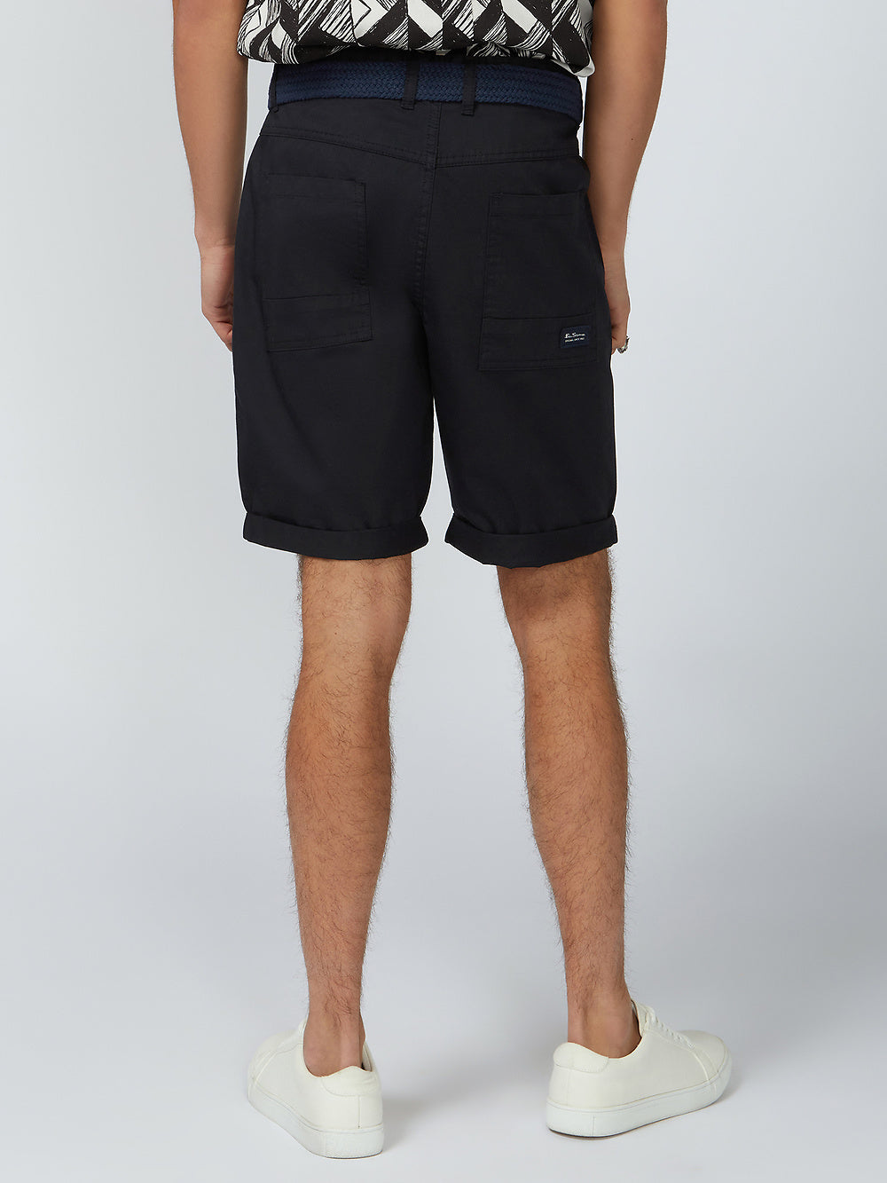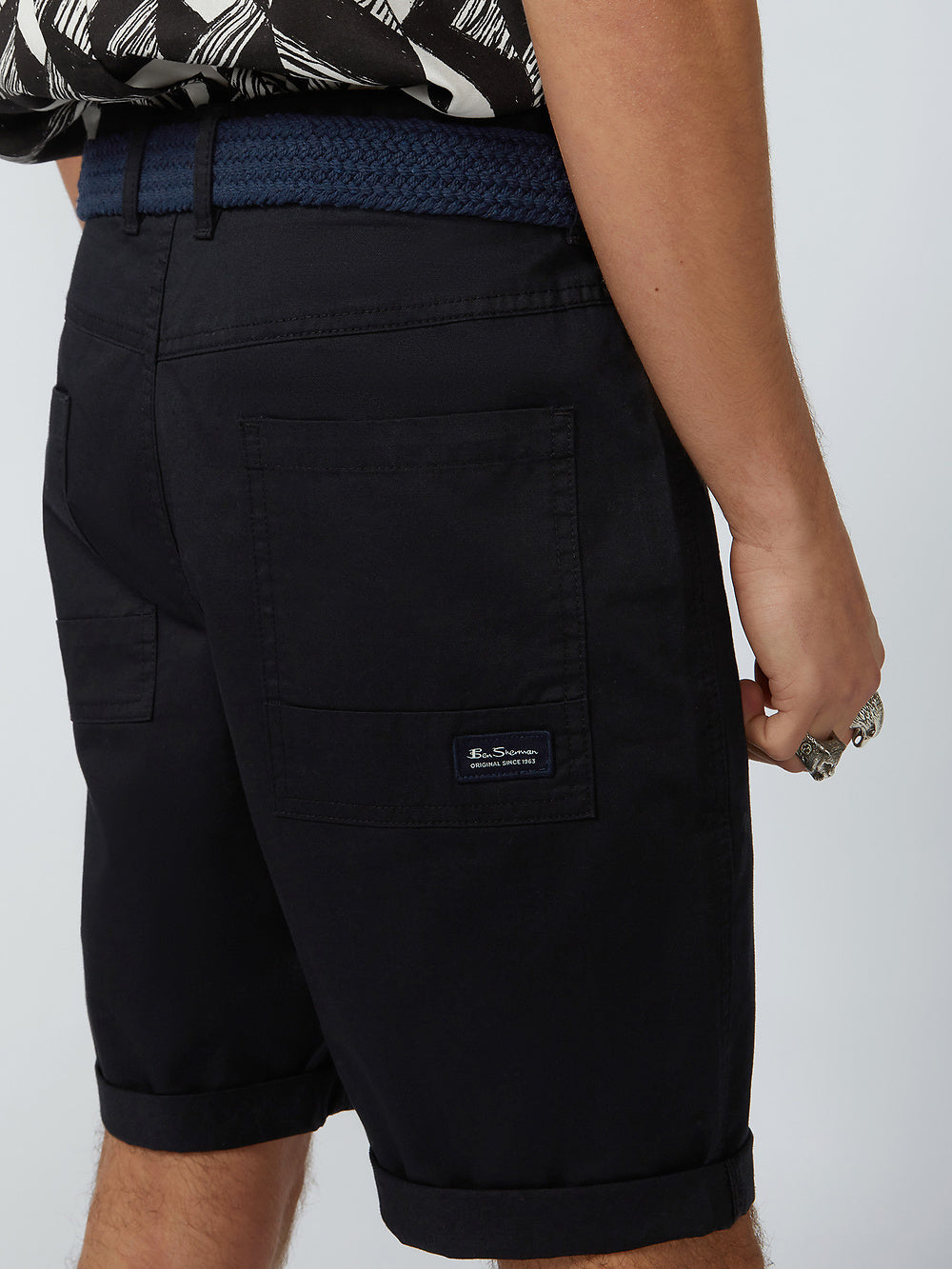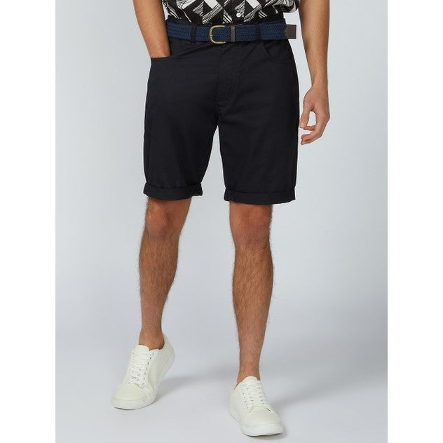 Our 5 pocket walk short is an instant classic for the warmer months. This style features a dark blue plaited belt and rolled up hem.