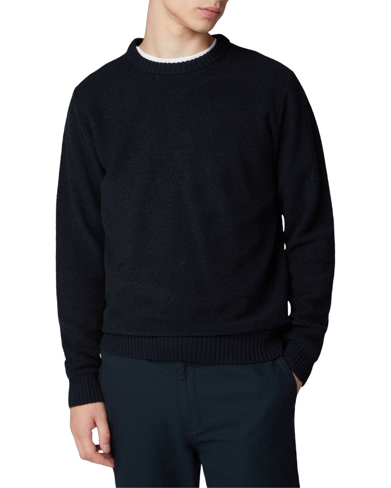 This jumper is warm and practical and full of style. Wear over a nice tee or over a collared shirt. It can be dressed up or down. Ben Sherman boucle look knitted jumper, with a crew neck and set in sleeves.