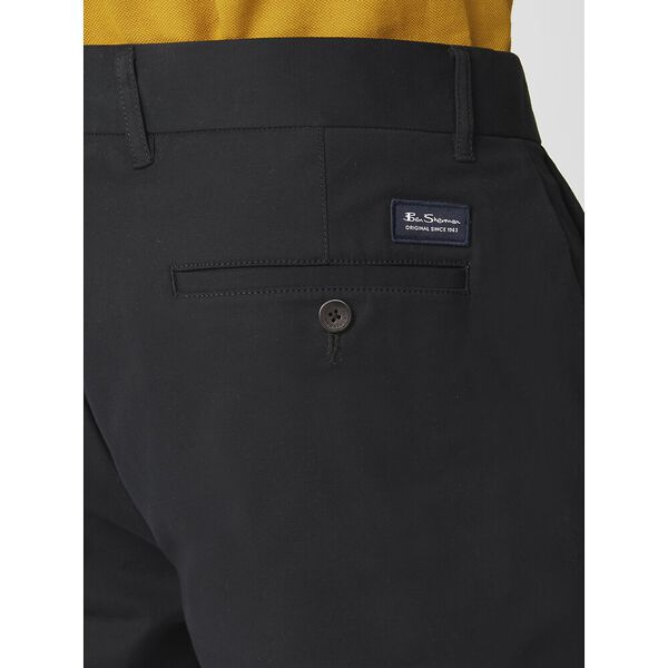 A chino short in a regular fit. Featuring 2 side pockets, 2 welt pockets and a coin pocket with Ben Sherman branding on the center back and mod stripe tape detailing on the turn up hem. Made with 100% organic cotton.