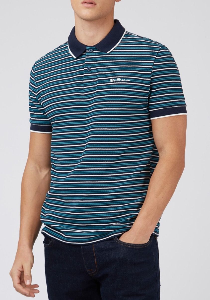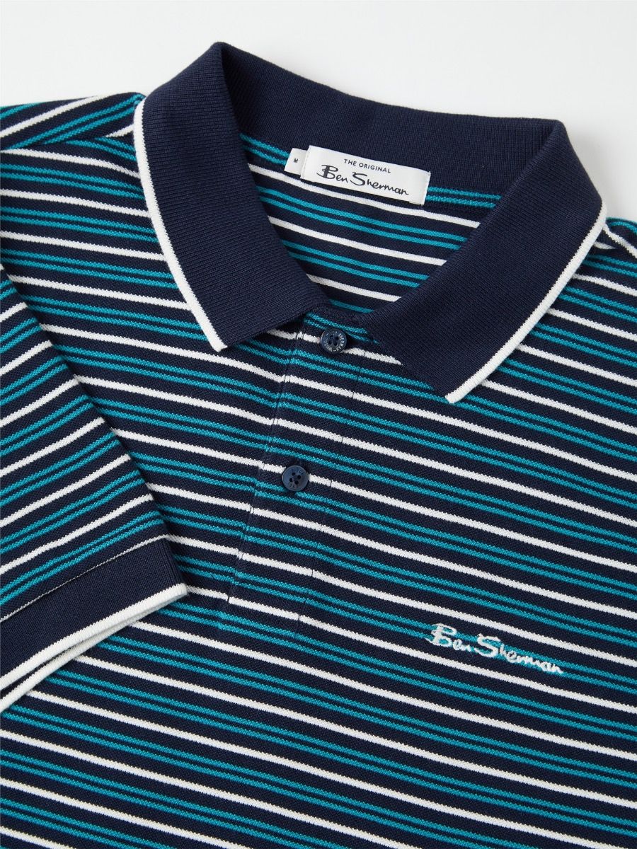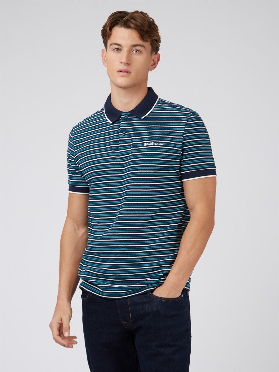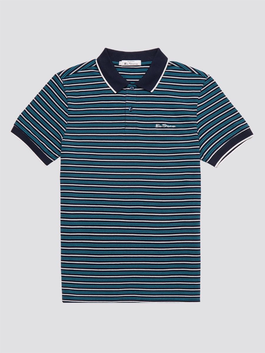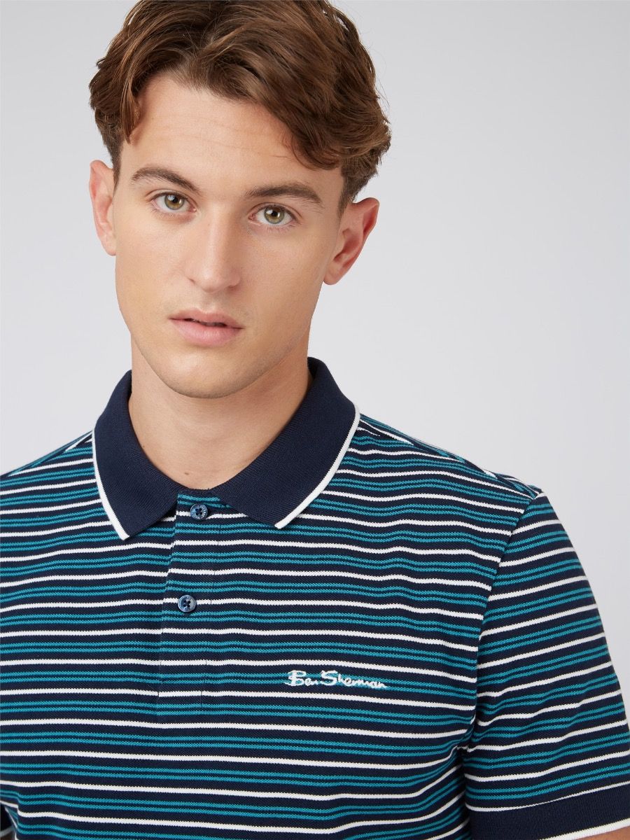 This Ben Sherman is a true mod style staple, this signature polo comes in 100% organic cotton. This all-over stripe polo shirt is crafted in soft cotton pique, with a contrasting collar and cuffs, and iconic Ben Sherman signature embroidery to the chest. A certified wardrobe essential from the original Mod menswear brand - est. 1963. Polo Shirts 3 Button Fastening Classic Fit Short Sleeve Flat Knit Collar and Cuff Chest Embroidery Machine Washable 100% Cotton