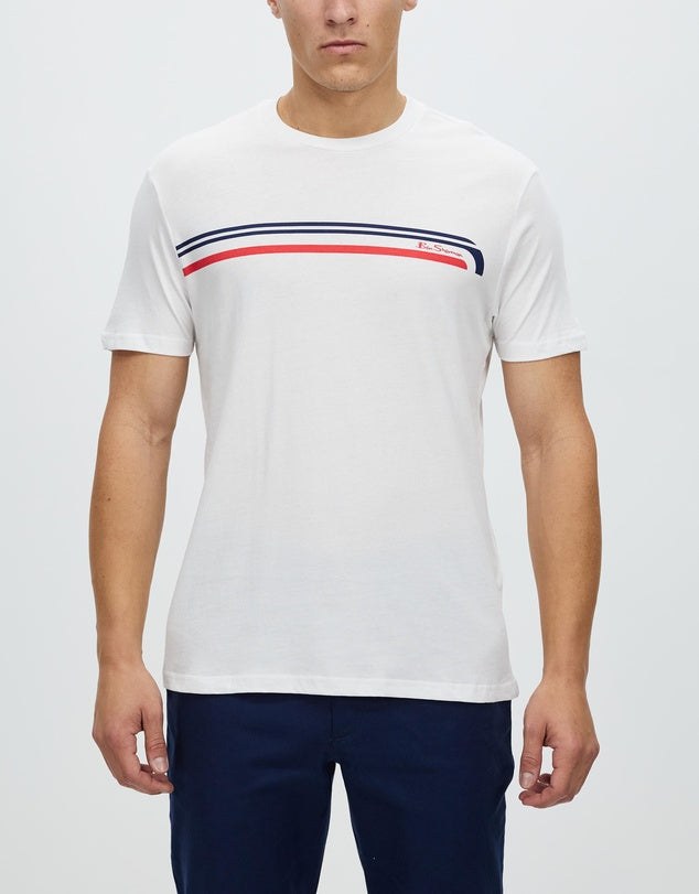 Ben Sherman's Printed Chest Stripe Tee is cut for a classic regular fit and works with just about everything already in your wardrobe.