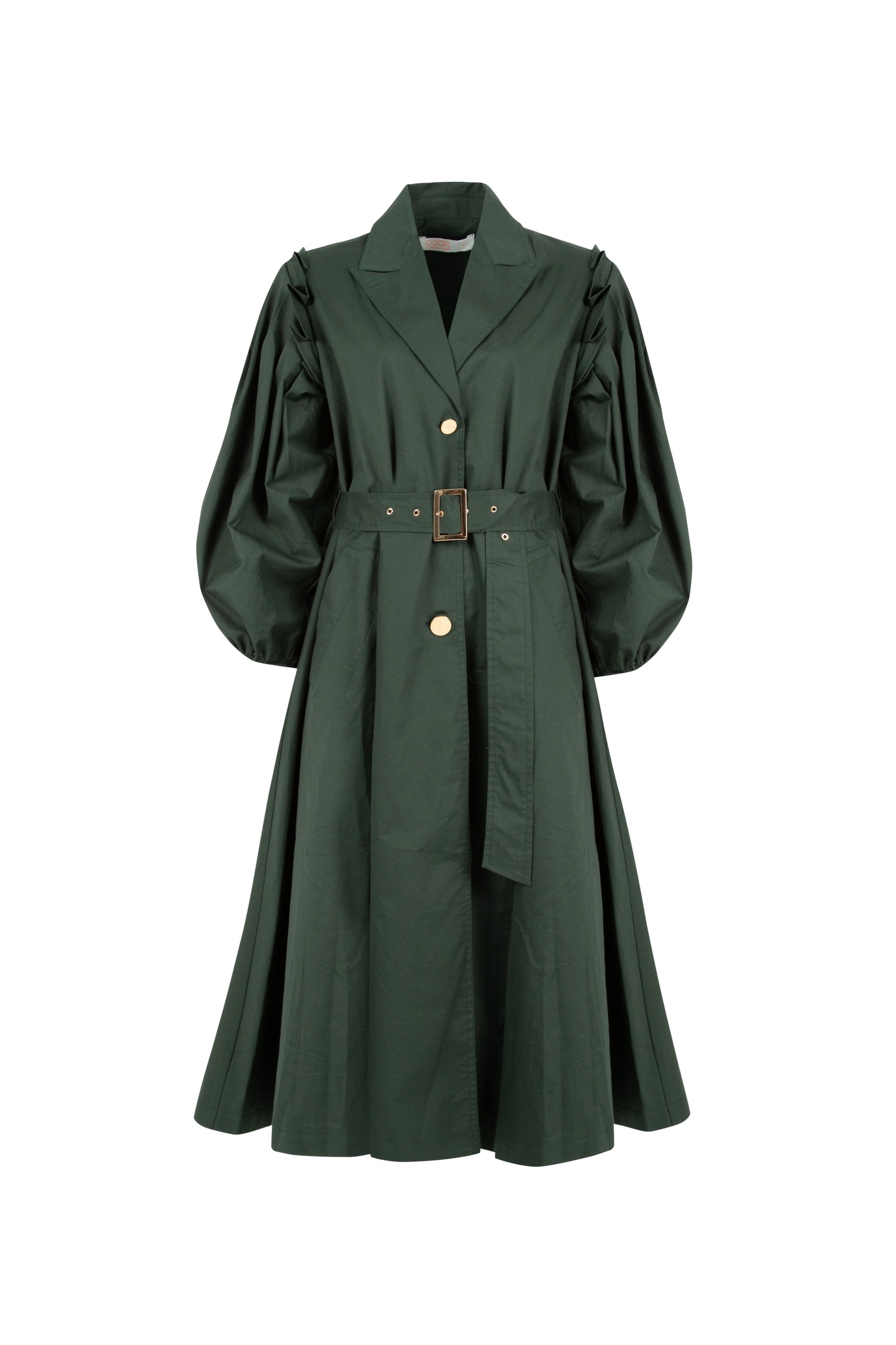 A must have this season, the 'Absolutely Trenched' is your new go-to, versatile coat. Featured in this seasons 'Drill Down' cotton twill, this Coop staple has dramatic puff sleeves with a pleated detail at the shoulder, a buckled belt, and button closure. Throw over any Coop piece from this season as the final touch, or even wear on its own as a dress!