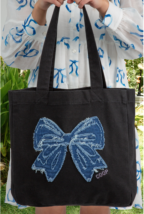 Complete your look with the ‘The Bold & The Beautiful’ bag this season, a perfect hold-all that doesn’t compromise on style. Featuring a distressed bow applique and crafted in a durable cotton drill, this bag is the ultimate choice for gals on the go.