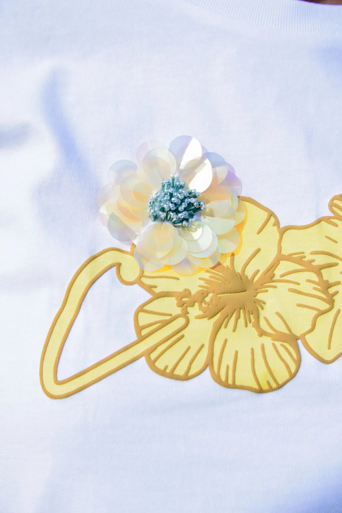 Relaxed yet radiant, the ‘Hibiscus Holiday’ tee brings a playful twist to a wardrobe classic. Crafted in our soft ‘Tee-rrific’ cotton, it features the iconic COOP logo with a tropical twist, embellished with sequins for a sparkling statement that elevates everyday style.