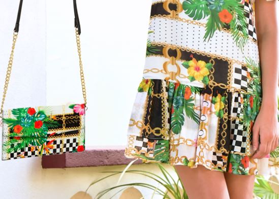Designed in the 'Hi Hi Hibiscus' print, this over-the-shoulder bag can be worn on one shoulder or cross-body. Ideal to carry your night-out or festival essentials!