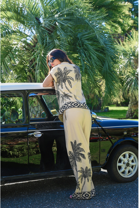 Welcome a bold print with the ‘Stride After Stride’ pant. Crafted in the ‘Palm Beach’ printed linen rayon, these relaxed trousers feature pleats from the waist that fall to a wide leg complete with a bold palm print. For a co-ordinated look, pair these with the matching ‘Tropic Utility’ shirt.
