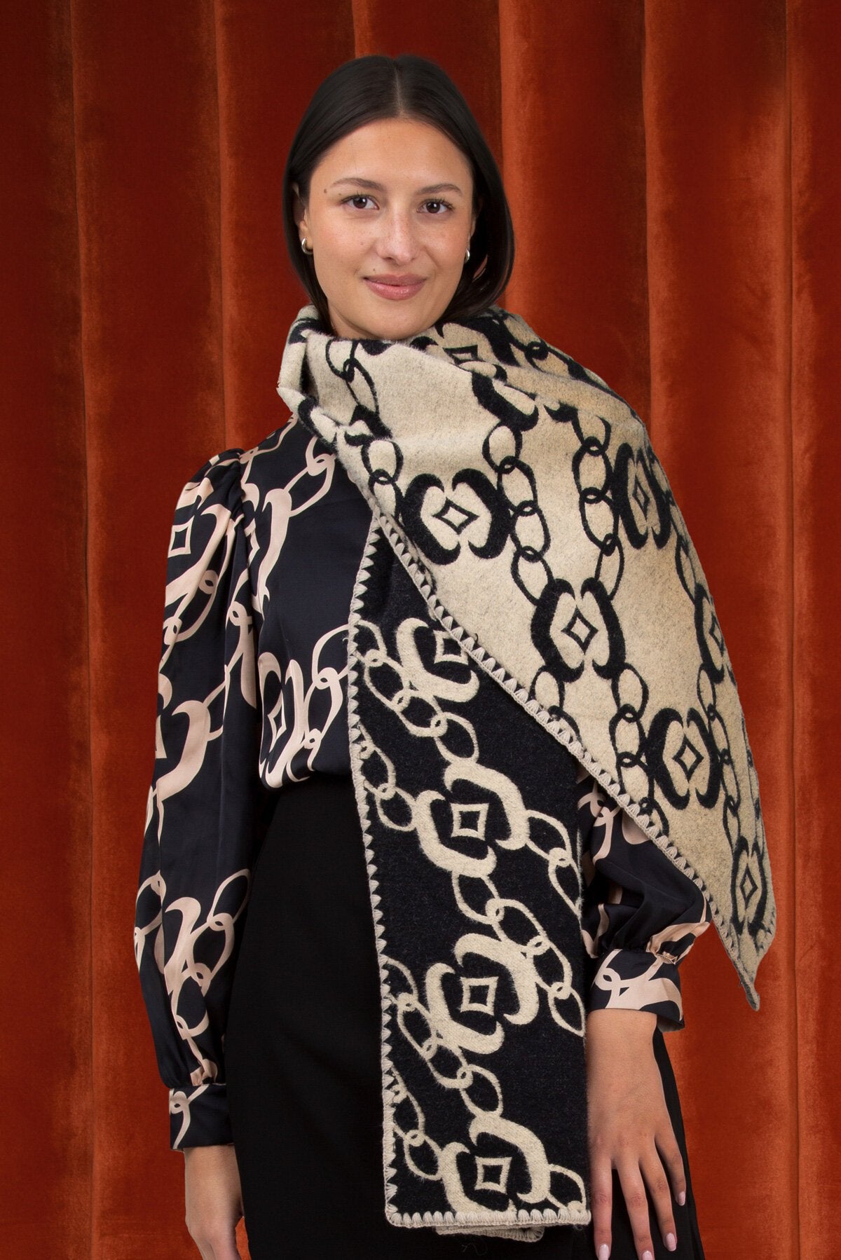 Be the ultimate cool girl with this season’s COOP accessories. Crafted in the bold ‘Mono-gram Worthy’ jacquard the ‘Wrap it Like it’s Hot’ scarf is a piece you’ll be reaching for time after time as the cold weather sets in. Designed to be reversible this scarf is a fashionista’s best friend!