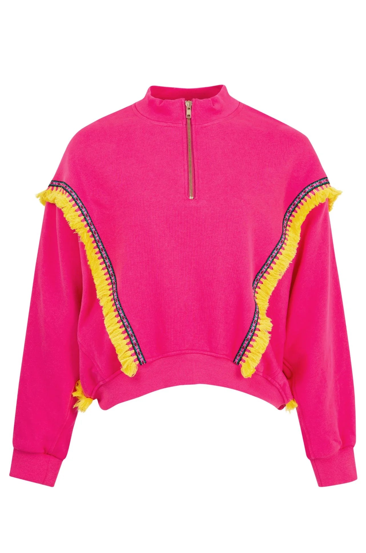 Designed with a playful nature in mind the ‘No Sweat Zip N Slide Sweatshirt' from Coop combines the practicality of a sweatshirt with high-fashion details. Crafted in the ‘No Sweat’ cotton sweatshirting, this piece offers a ½ zip front with a subtle stand collar, a generous batwing cut sleeve and a fringe adorned tape. Perfect teamed with its matching counterpart ‘Short Stuff’ short for a happy-go-lucky spring look.