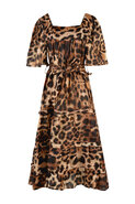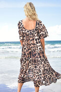 Get wild this summer in the 'Con-dress Your Sins' dress, designed in the 'Prrrrr It's Hot In Here' printed linen. This dress features exaggerated puff sleeves, square neckline, tiers and a waist tie to accentuate the female from. A dreamy silhouette you will always reach for!