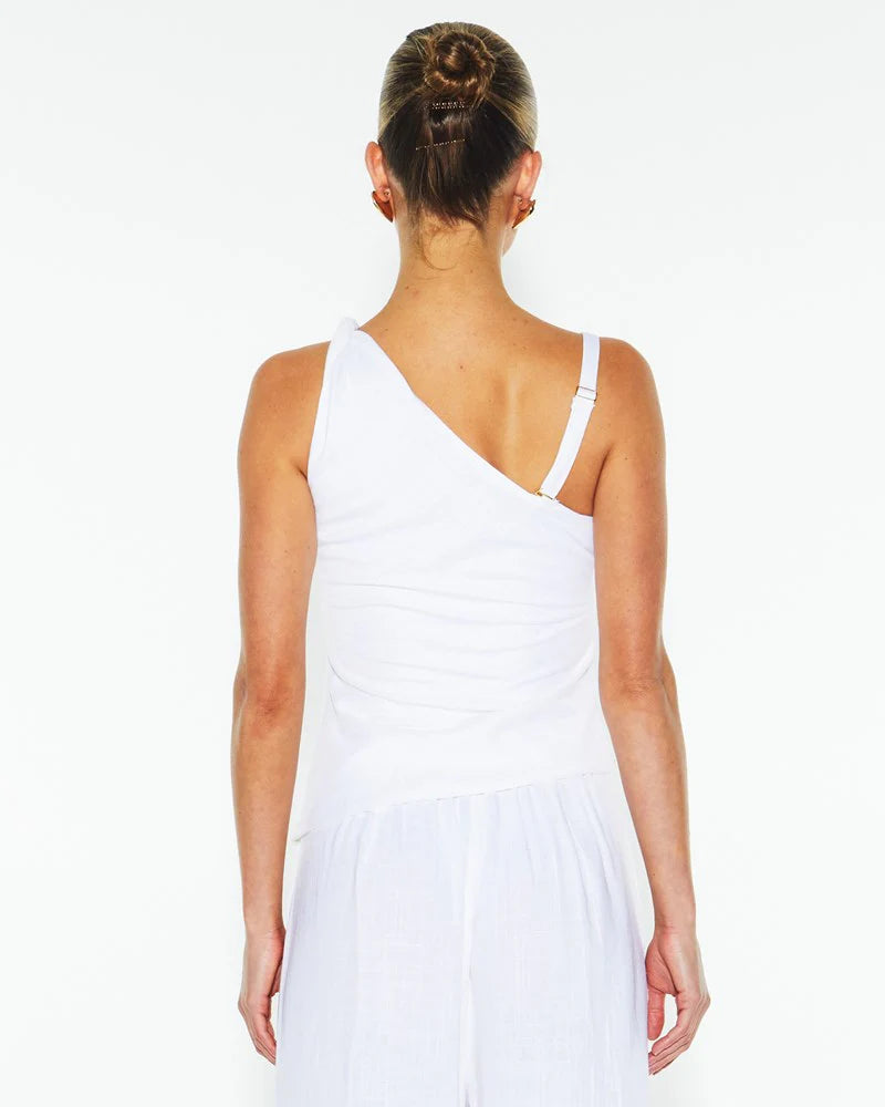 The Statues Twist Cami combines refined design with everyday comfort. Its twisted strap and asymmetric hem detail create an elegant look, while the soft linen blend fabric offers a relaxed, springtime fit.