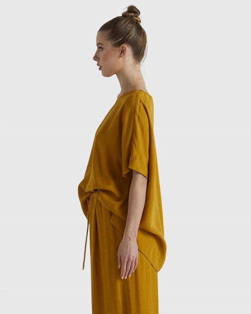 The Fusion Top exudes contemporary charm with its boxy silhouette and wide sleeves. Its unlined design and round neckline make it an on-trend option for those who value effortless sophistication.