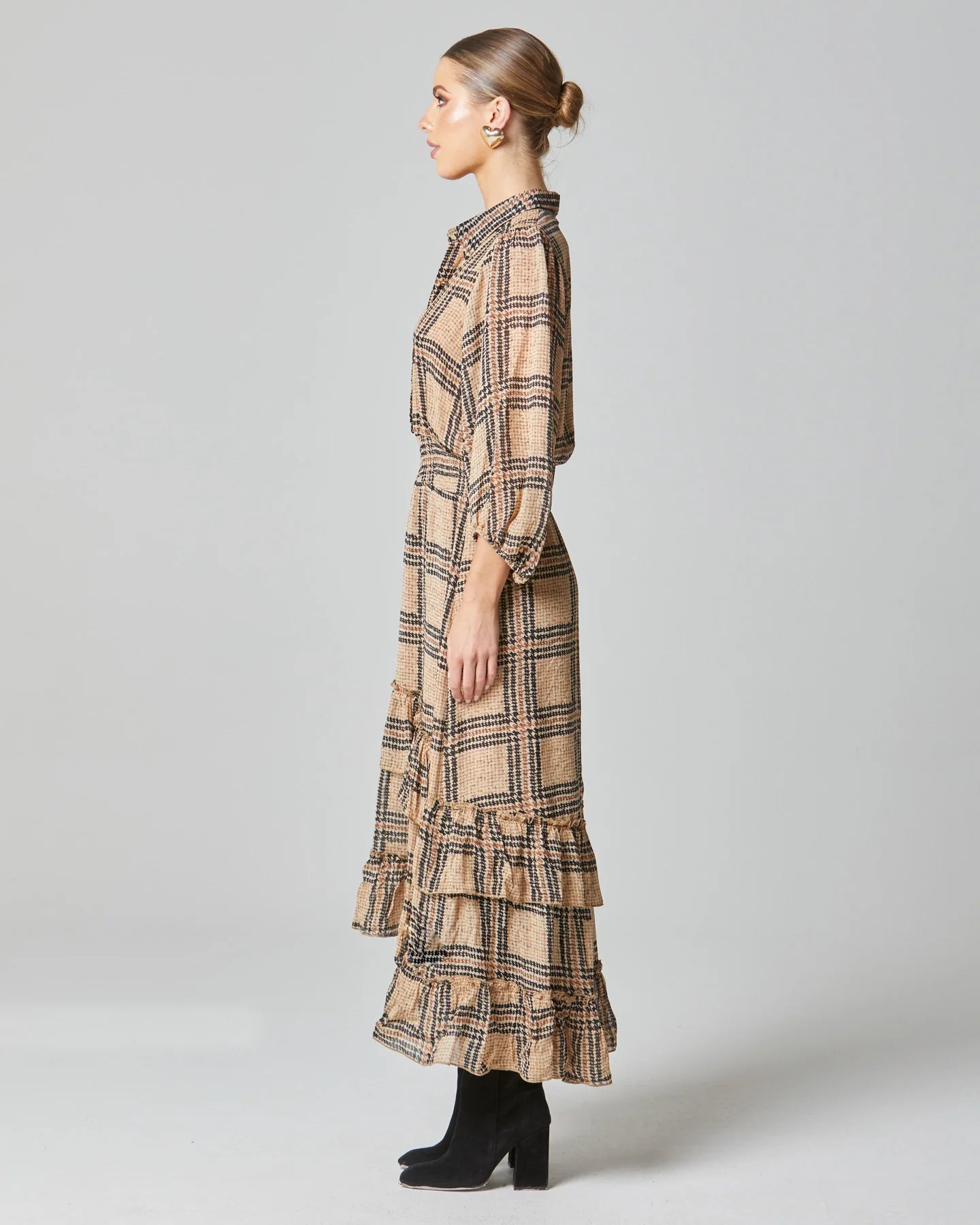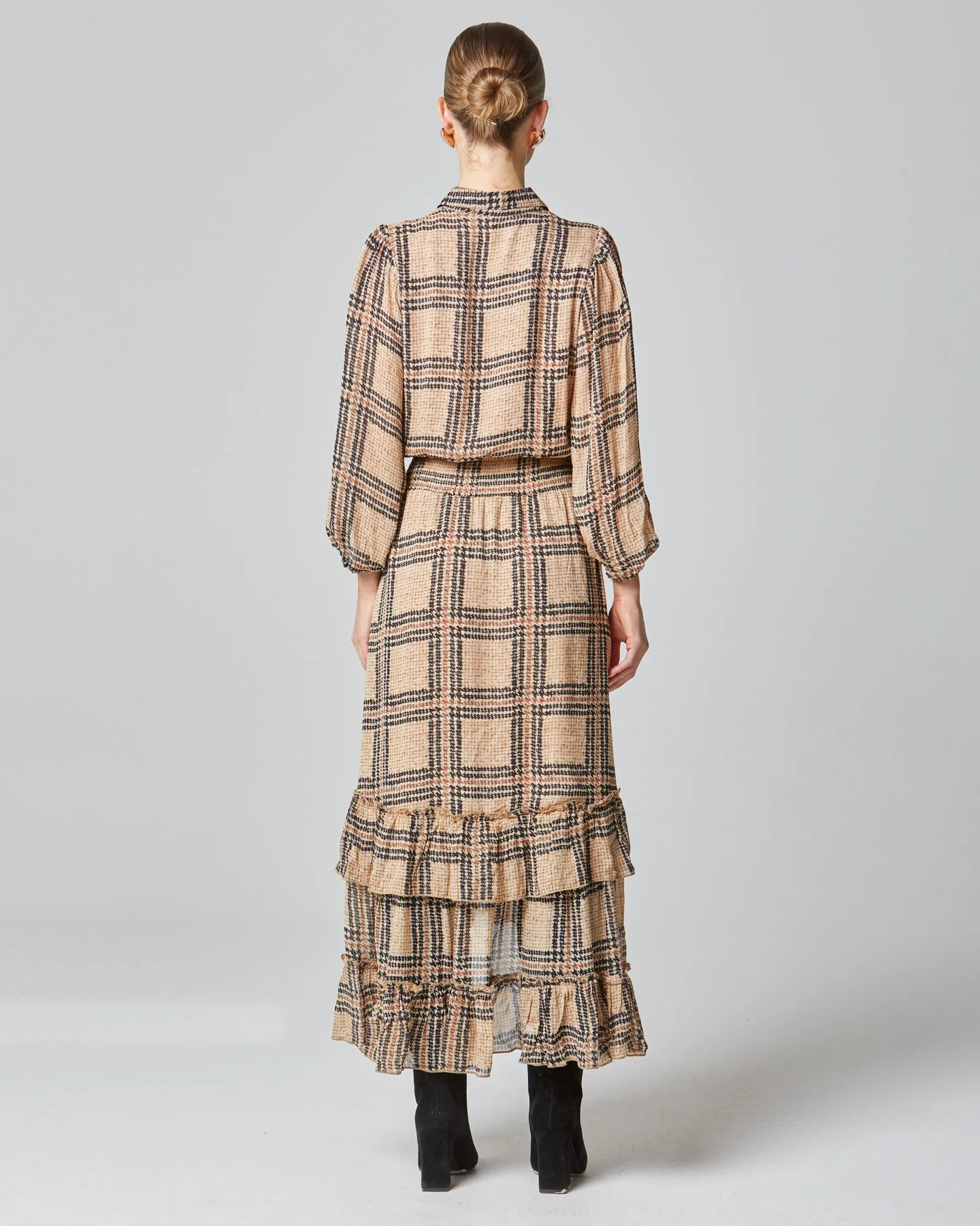 Fate+Becker Something Beautiful Midi Puff Sleeve Shirt Frill Hem Dress