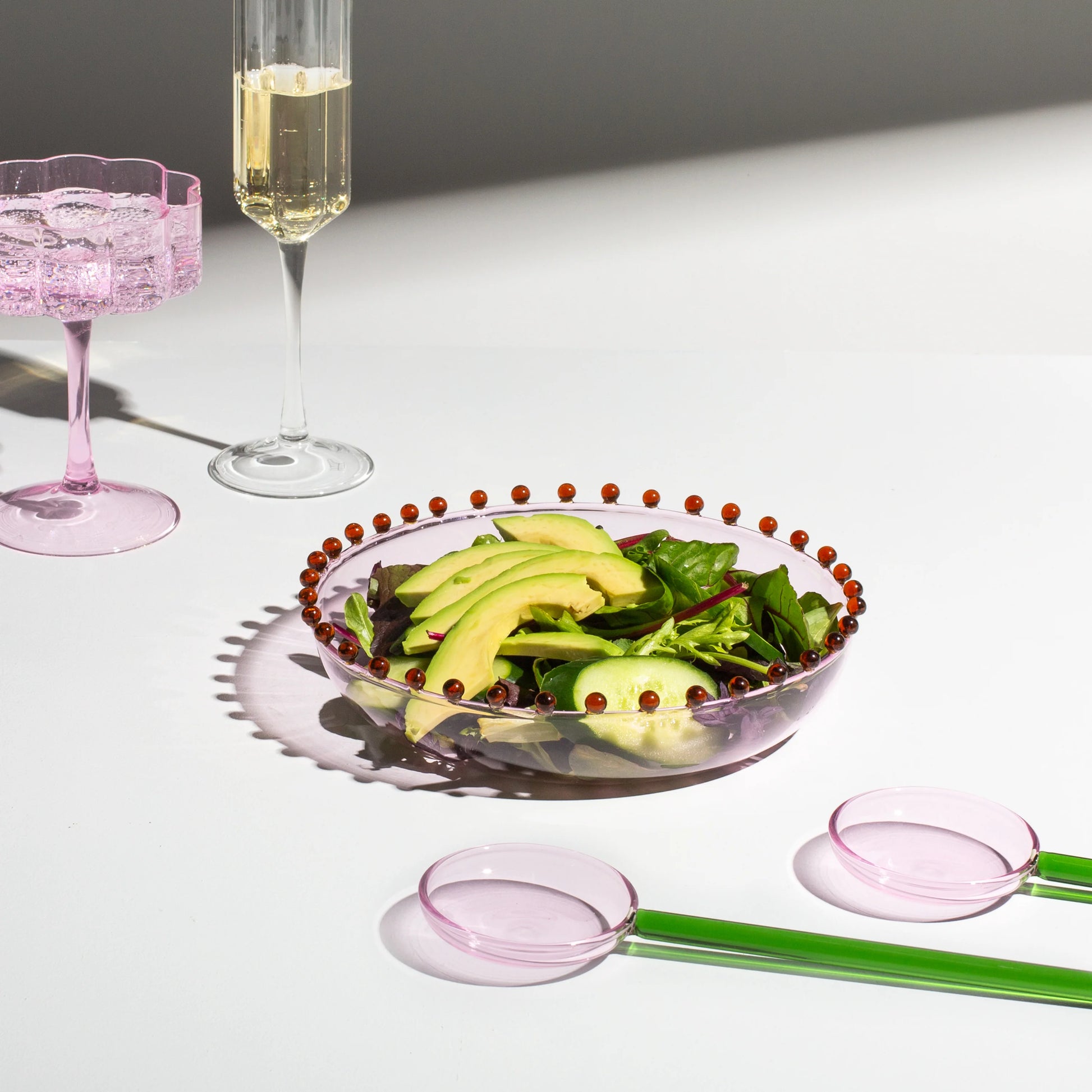 FAZEEK's Pearl Platter - Pink + Amber is a beauty to behold. Each handmade glass pearl is meticulously formed and fired onto this high-quality serving piece for you to admire and enjoy.