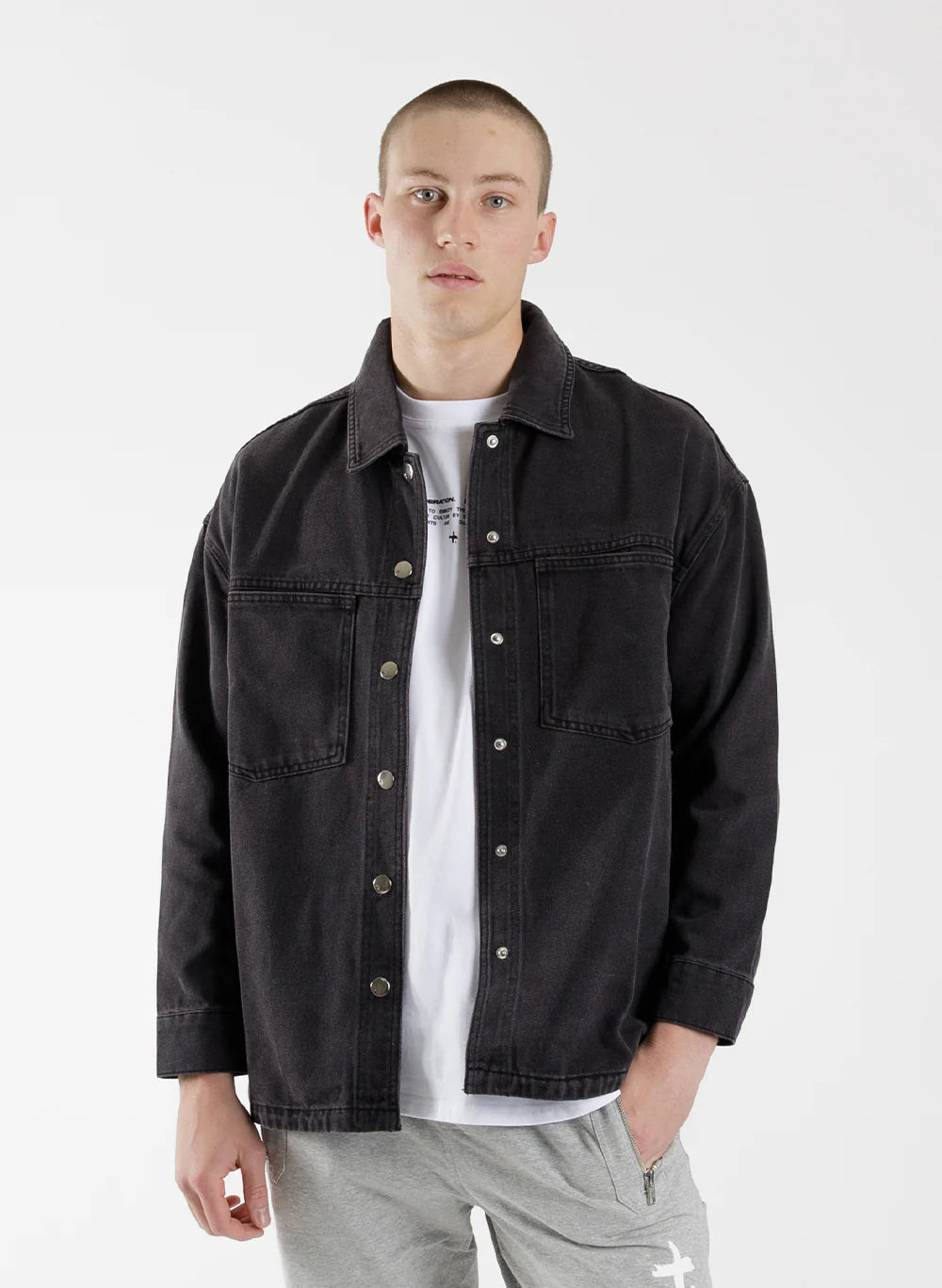 The Denim Shacket is a slightly relaxed fit with roomy front pockets and stitching detail. With a 6 button-closure at the front. Made in a black wash: This colour wash complements any outfit.