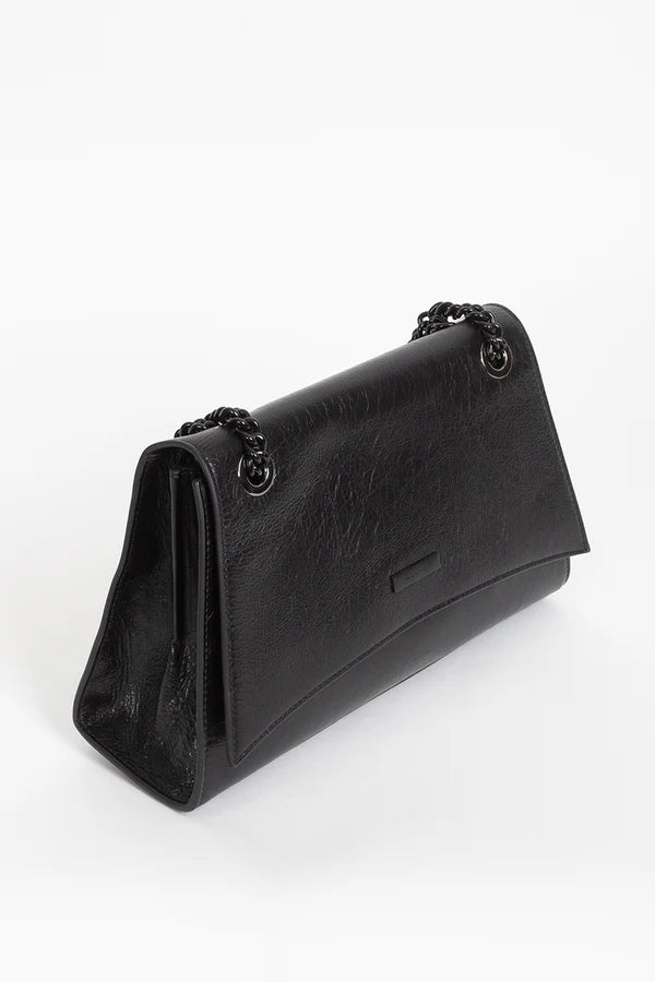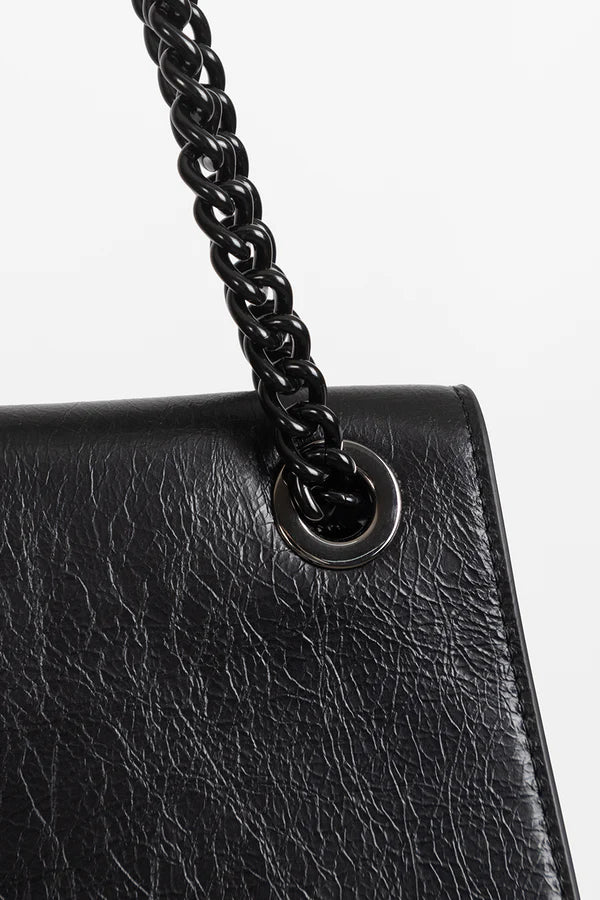 Your perfect companion for any occasion, the Forever Bag is crafted from premium black leather with a distinctive crinkled texture. This versatile bag features a structured design with a bold black chain strap, adding a touch of contemporary edge to your look. A subtle metal badge displays "FEDERA+ION." for a signature finish. All bags arrive in a protective dust bag.