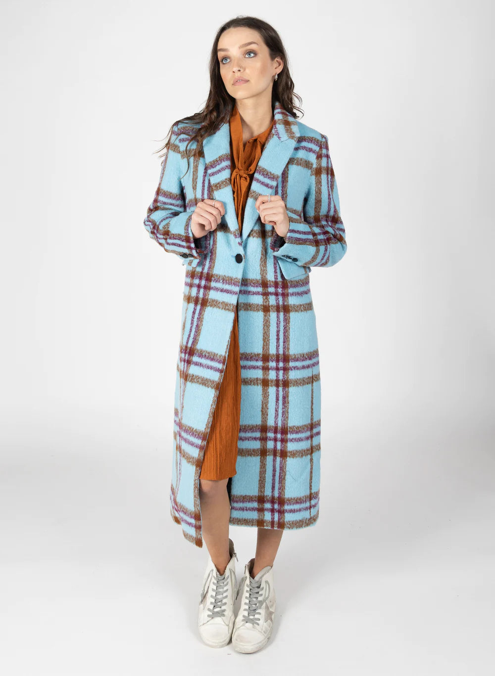 The Ivy Coat is a cozy wool blend jacket that comes fully lined and features elegant new aqua check colourway. Plus a sleek collar perfect for formal occasions and events, or for your work wardrobe. A great layering piece to add that final touch of glam to any outfit.