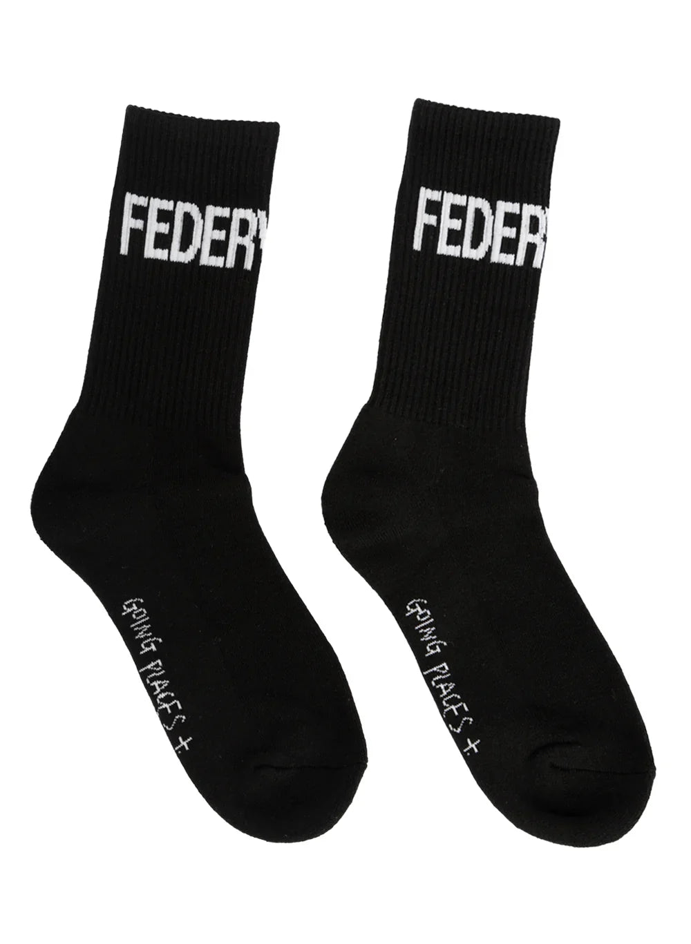 Black with white logo font woven in. With just the right amount of elastane sure to keep you looking fresh year round!