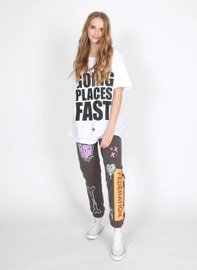 Going places fast! Another wardrobe staple by Federation. This tee will look great with active/lounge wear or under a blazer...