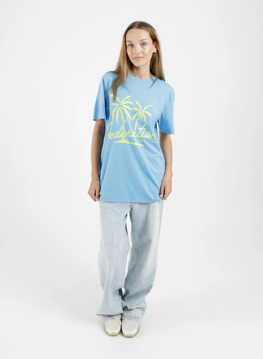 Here in our new Holiday tee. Featuring a rad palm tree graphic, perfect for this season. Made from soft, comfortable cotton for everyday wear.