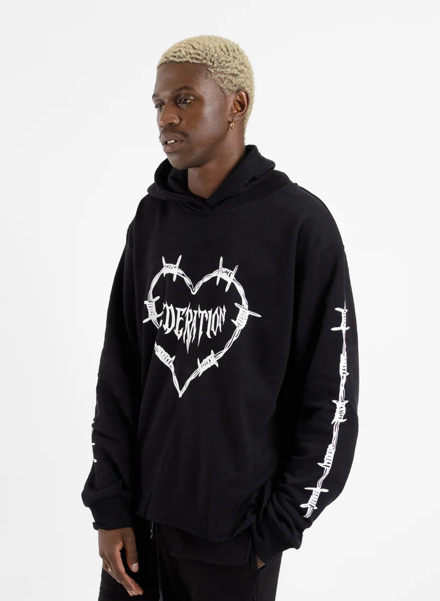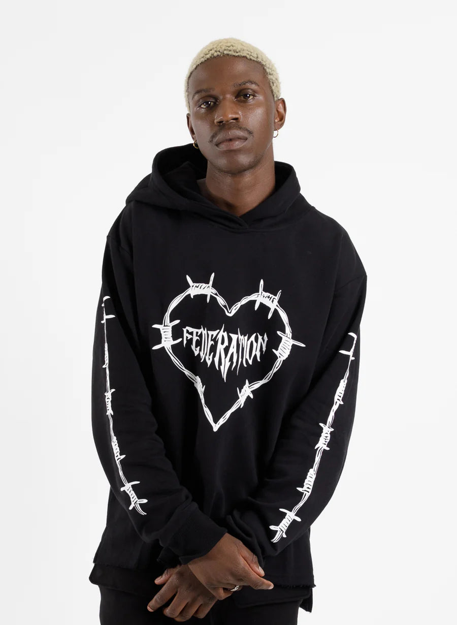 The Streets Hood is an oversized, longer-length hood making it the perfect piece to wear by itself as a dress or with your favorite Fed bottoms, featuring a front pocket for all the essentials. Finished off with this seasons Caution print.
