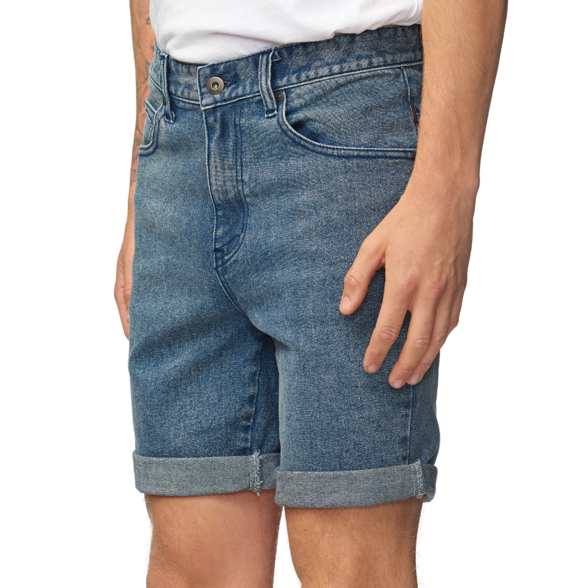 The Goodstock Denim Walkshort 2.0 is made from 99% Cotton, 1% Spandex, stretch Denim, 5 pocket styling with rolled hem, stone washed with denim treatments, 18.5" outseam, YKK fly zipper.