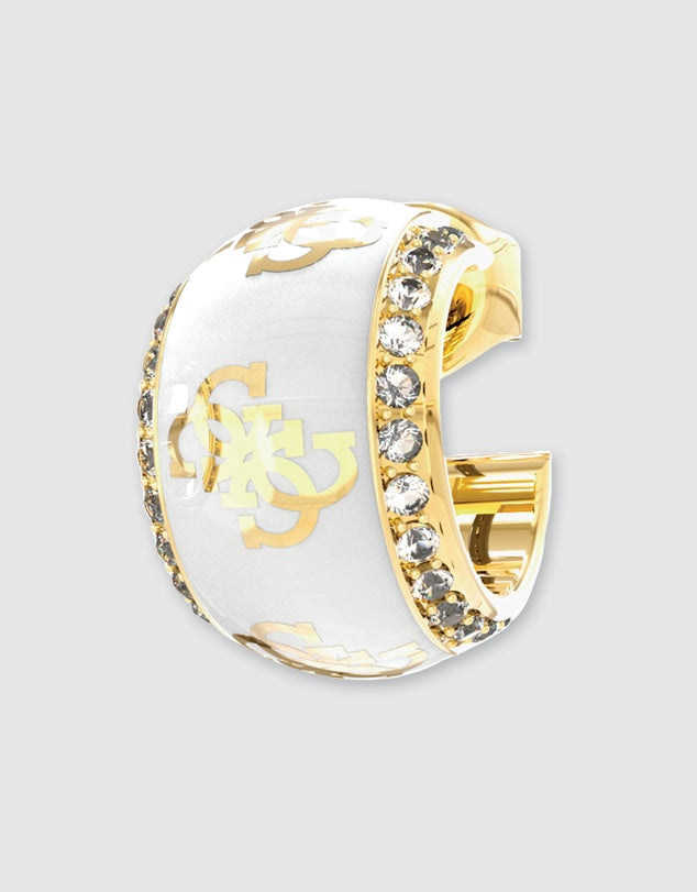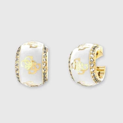 Guess 4G Loop Mini Hoop Earrings - UBE02280JWGWH Guess 4G Loop Mini Hoop Earrings featuring a centered 4G White Bead pendant with crystal around the gold tone casing. This is an alluring accessory for a glamourous look. An elegant fashion forward stylish accessory.- Jewellery type: Earrings- Size: 15mm- Colour: Gold- Material: Steel and Nickel free/ Hypoallergenic.