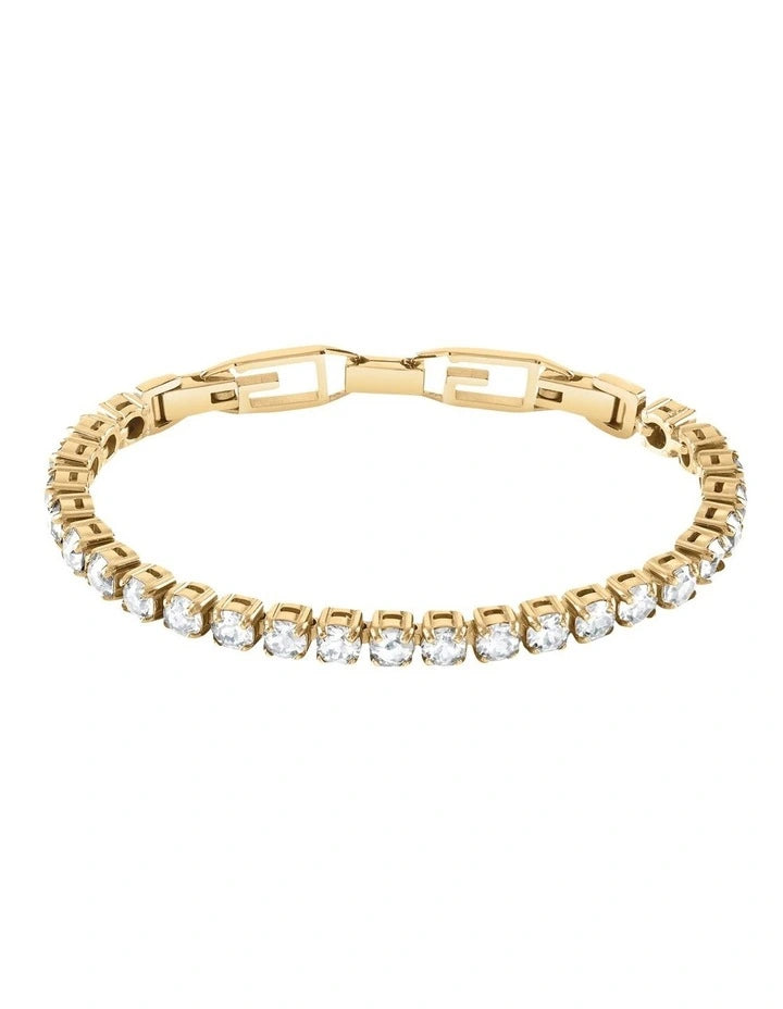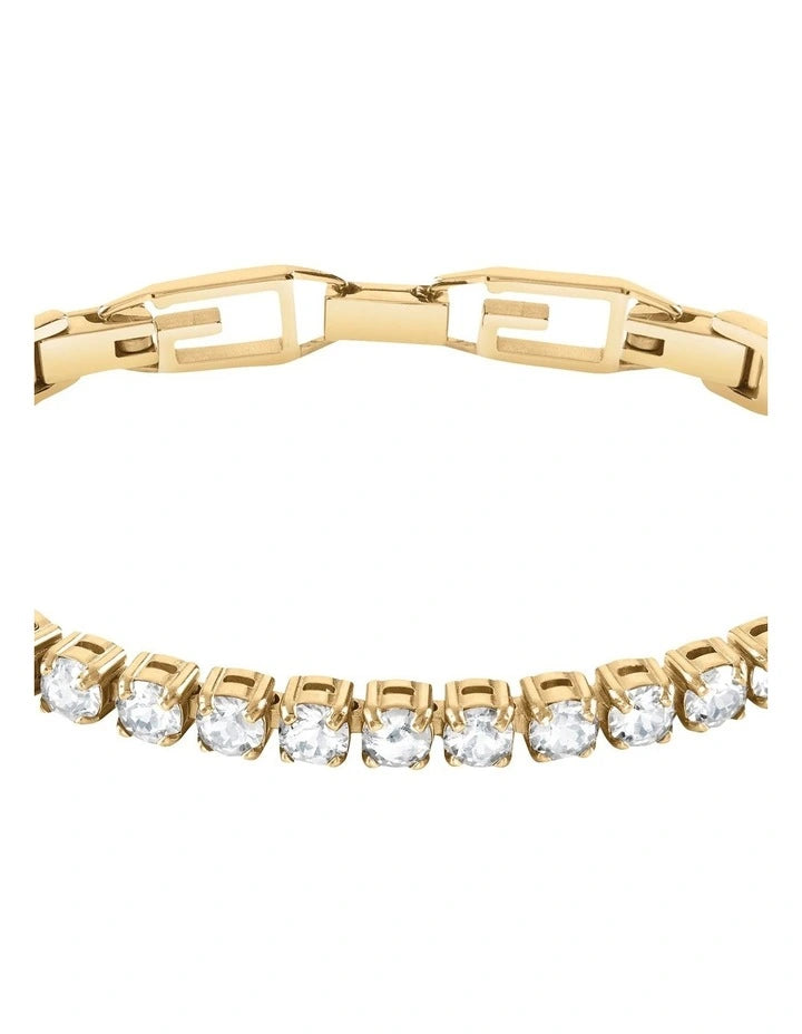 yellow gold variant: 93% Stainless steel 6% Crystals 1% Yellow gold plating.
