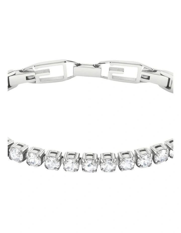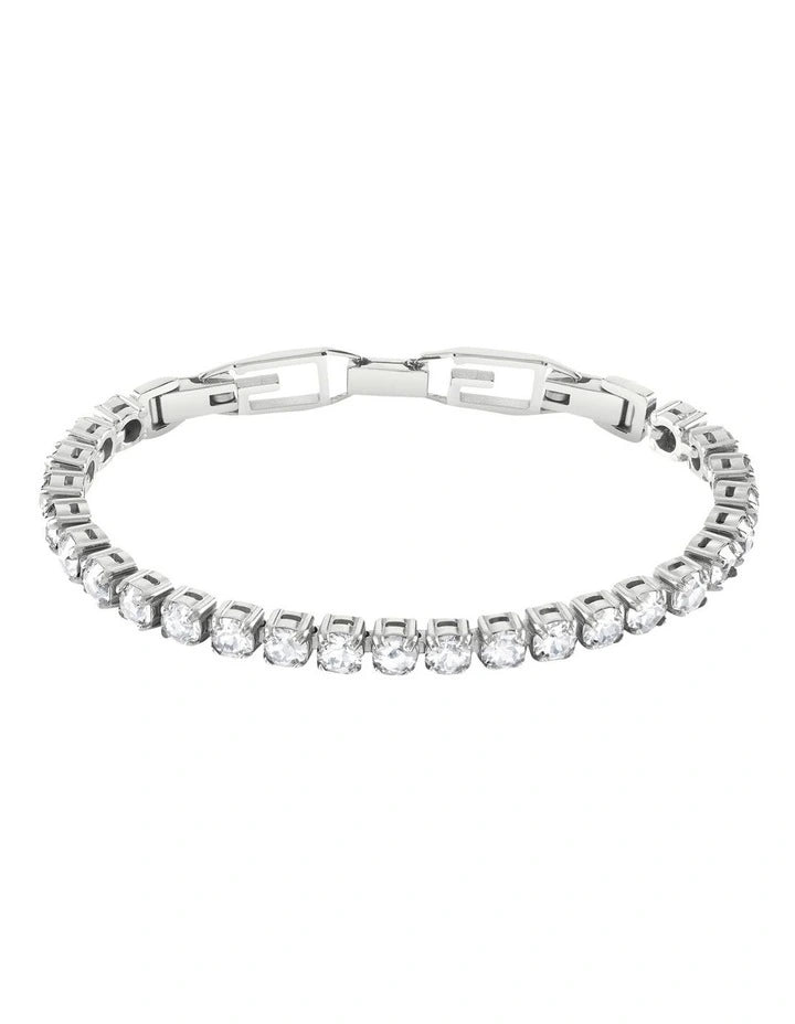 silver variant: 93% Stainless steel 6% Crystals 1% Rhodium plating.