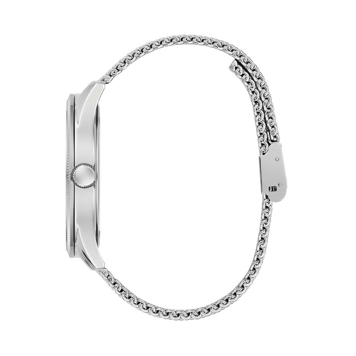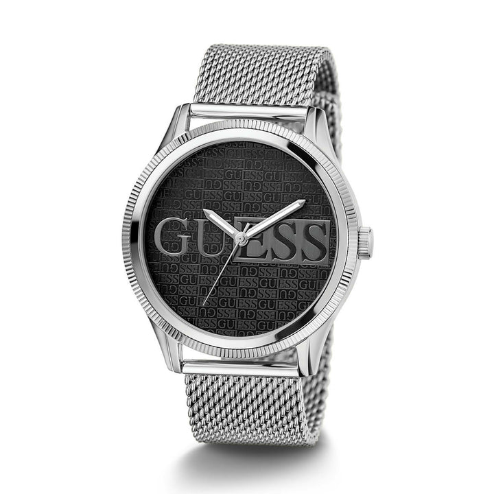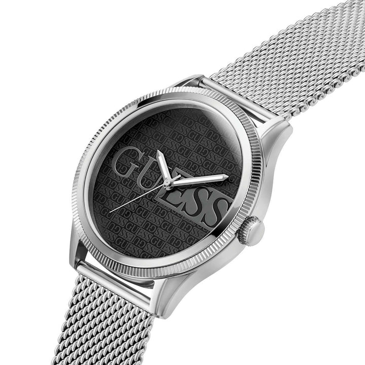 More than a watch this new collection from GUESS Watches is a statement of your style. Our iconic GUESS branding is showcased in the middle of the black dial and encased in a 44mm silver tone case with a silver tone mesh strap to add a sophisticated finish to this luxe logo look.