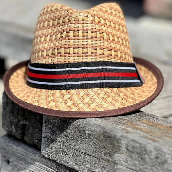 This fedora-style hat with a striped band is perfect for summer and not to mention stylish.