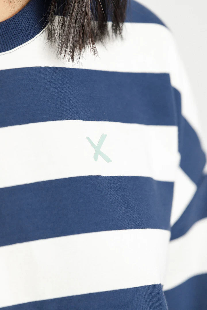 Made from our stretchy Cotton/Elastane Sweatshirting fabric, this crew features a ribbed neckline, cuff and hem, and a mini raised X on the front chest.
