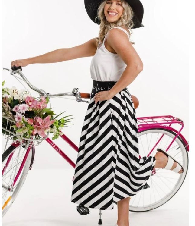 The new Sophie Skirt has a firm elastic waist and flowing A Line skirt. Yes it has pockets! Yes it has pleats! Yes it has style!