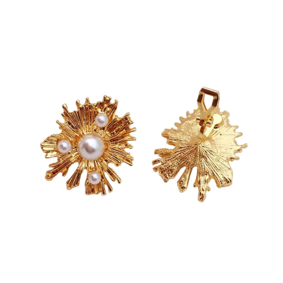 The Adelle Earrings are a burst of light, inspired by golden rays and starlit elegance. Anchored by luminous freshwater pearls and detailed with radiant spikes, these clip-ons capture movement and glow all without the need for pierced ears.