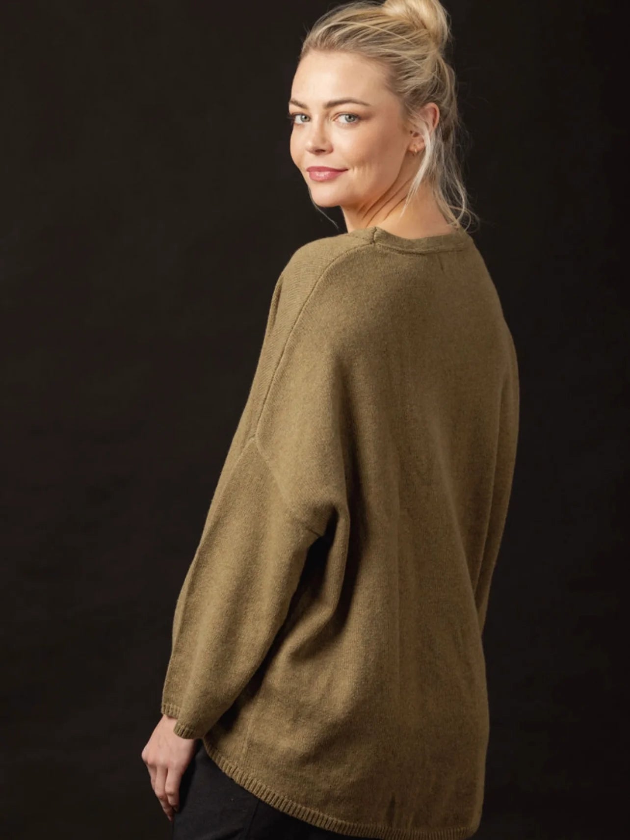 Experience warmth and style with Mi Moso's Pixie Knit - Khaki. Made with super warm and comfortable merino knit, this easy-to-wear top features casual styling that pairs perfectly with denim for a dressed down look. Stay cozy and fashionable all winter long.