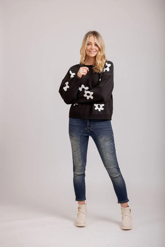 Cosy, cute, and guaranteed to get compliments. The Miss Marlow Zoe Knit has a relaxed fit and playful floral design that makes winter dressing feel a bit more fun. Just add denim and a smile.